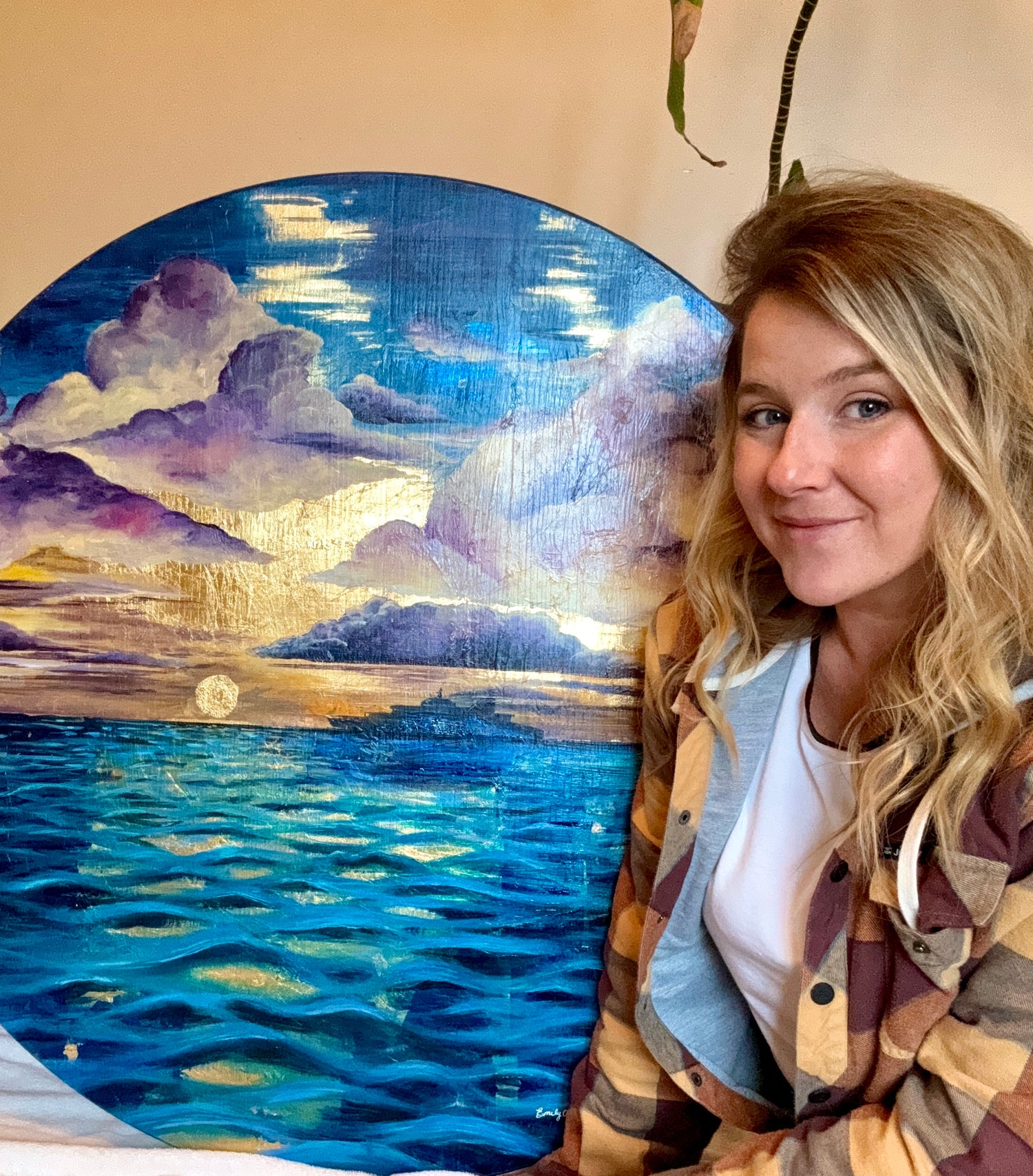 Following graduation, Emily relocated to San Diego, California, where she embarked on an artistic journey experimenting with epoxy resin. Enchanted by its ability to fuse the rich colors and texture of oils with the flowing nature of watercolors, she incorporated this medium into her repertoire alongside oils and watercolors, gaining notable recognition for her resin work.