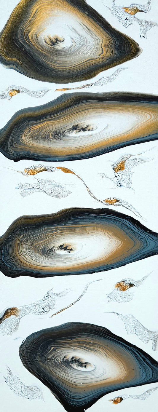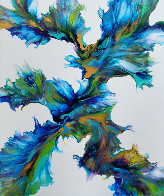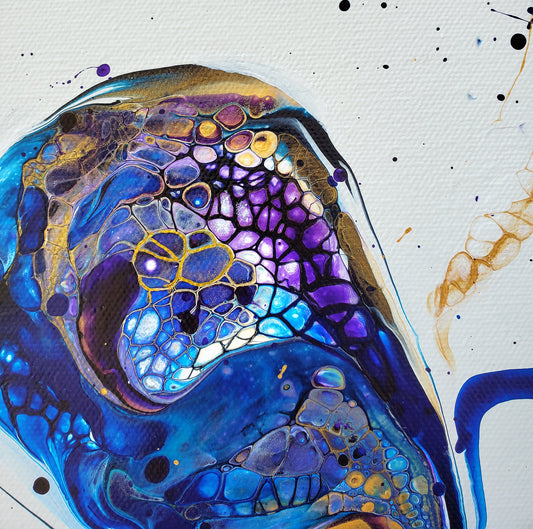 After trying different mediums, I kept coming back to fluid art. I was attracted to the vibrant colors and how they moved across a canvas. I am a control freak and fluid art has taught me to let go a bit.